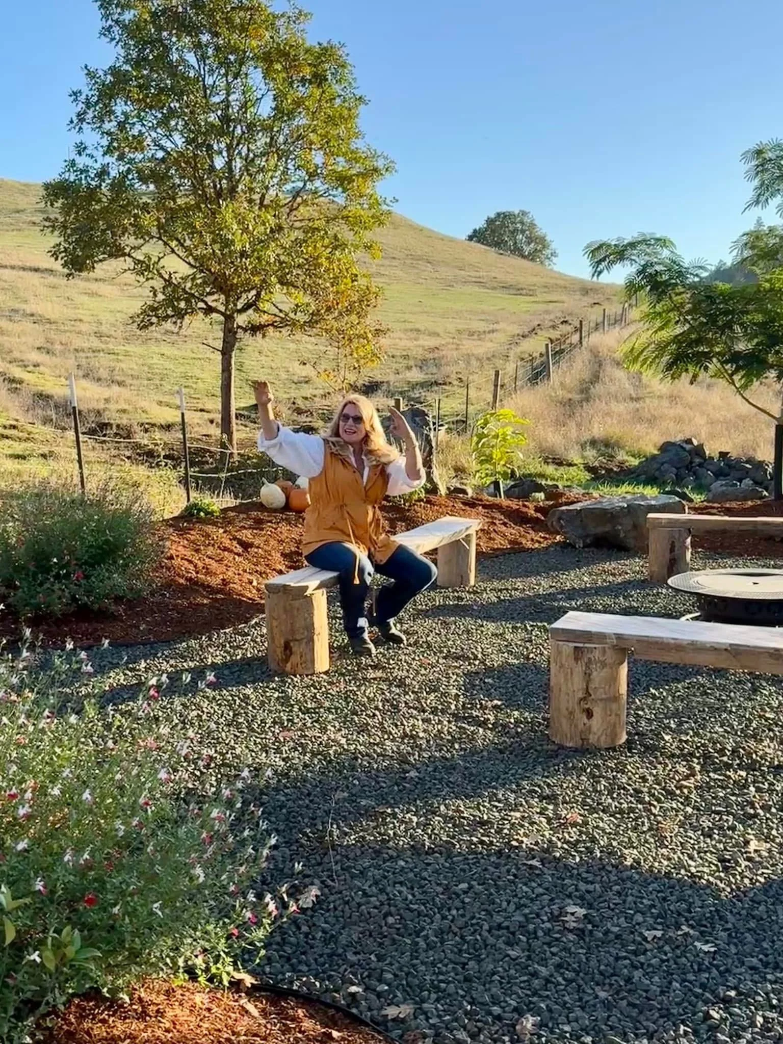 However, he was pleased with the new circular gathering space I designed, as it’s low maintenance and functional. I planned ahead and planted in the spring, so the landscaping is already established (“instant gratification” for him.) The level surface makes it easy for him to navigate (he’s lost some mobility), and the benches are the perfect height. In other words, it works.