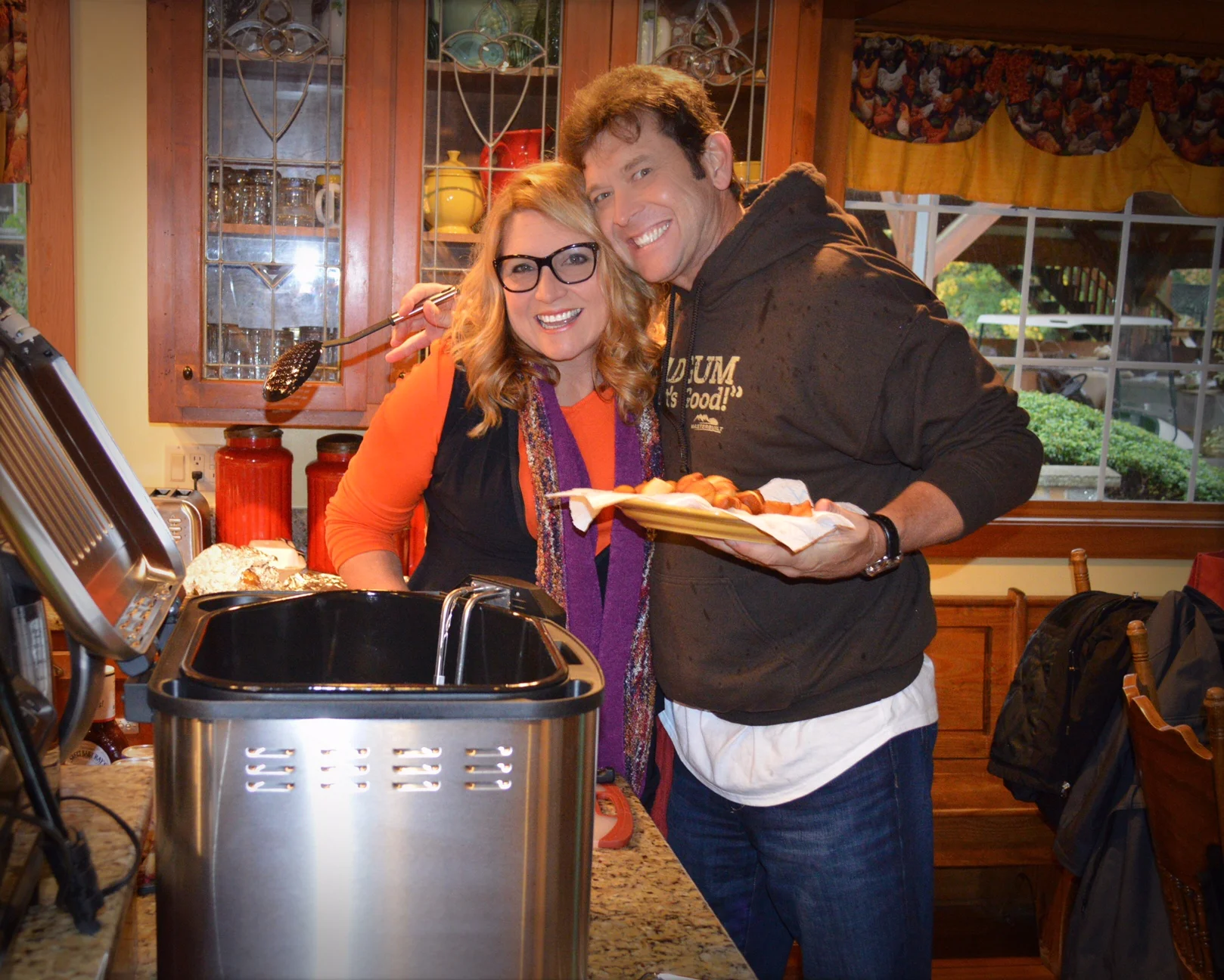 They also demonstrated their new countertop Butterball turkey fryer. I did the honors of dropping the bird John had injected with savory spices and Tonya had coated with even more, into the sizzling peanut oil. 68 minutes later, this 18 pound bird came out tender, moist, and to die for!